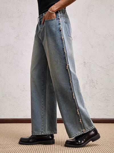 Men's Casual Everyday Commute Simple Solid Color Low Waist Loose Wide Leg Jeans-30%