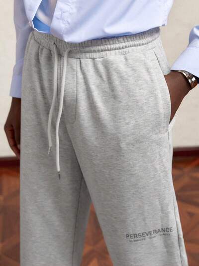 Men's Elastic Waist Graphic Letter Printed Relaxed Fit Long Sweatpants, Casual Gray Trousers Suitable For Autumn/Winter Daily Wear