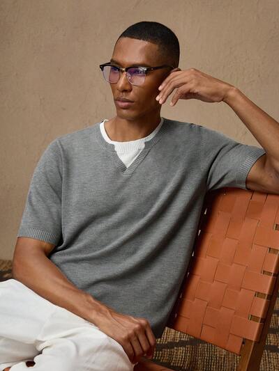 Men's Knitted Slim Fit Short Sleeve Casual Knitted Top, Suitable For Daily Wear-37%
