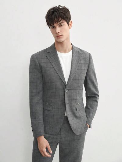 Easy Care 2pcs/Set Men's Old Money Style Woven Plaid Suit Jacket And Tapered Suit Pants, Suitable For Spring And Summer-50%