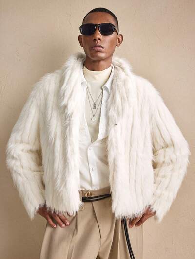 Men's Fashionable Long Sleeve Faux Fur Coat, Autumn/Winter, Christmas, New Year Glamour-60%