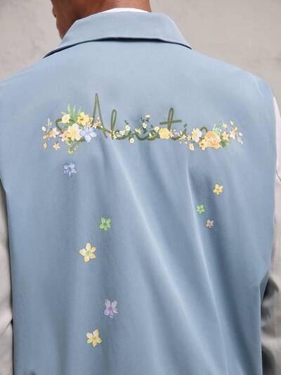 Men's Light Blue Floral Print Woven Panel Contrast Color Casual Jacket, Slim Fit, Suitable For Spring/Summer, Couples, Valentine's Day, Daily Commute, For Fall Winter
