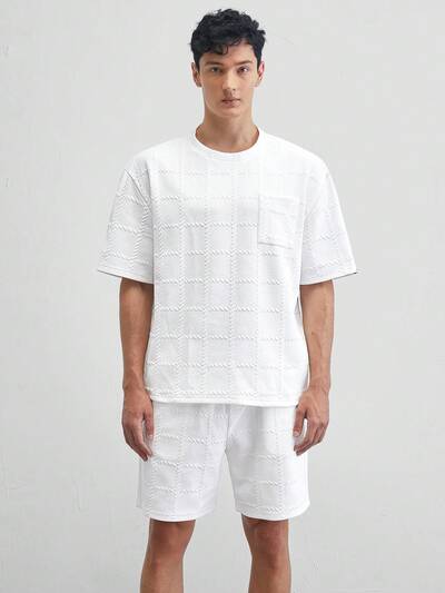 Men's Knitted Casual Round Neck Short Sleeve T-Shirt Set, Suitable For Summer