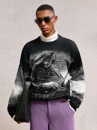 メンズドロップショルダー ラウンドネック 長袖 カジュアル ニットセーター、秋冬シーズンに適しています-60%