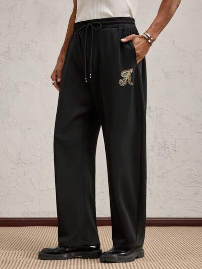 男性用 文字プリント カジュアル Oシルエット ニットパンツ、デイリーウェア、春夏、バケーション、パーティーに適しています-60%