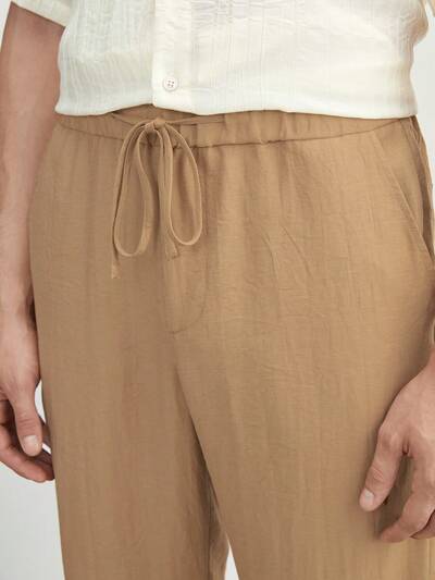 メンズ用オールドマネースタイル リネンスーツパンツ、低弾性ビスコースとテーパードレッグデザインで織られ、ドローストリングウエストとボタンの前立てが特徴、夏に最適-59%