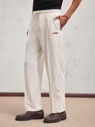男性用 文字プリント カジュアル Oシルエット ニットパンツ、デイリーウェア、春夏、バケーション、パーティーに適しています-67%