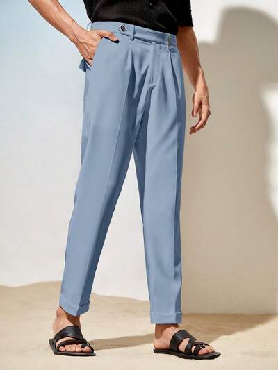 細身カジュアルストレートレッグメンズ ウーブンパンツ、プレーンロングカーキアーバンスラックスパンツ、デイリーウェアに適し、旦那様、彼氏のギフトに-52%
