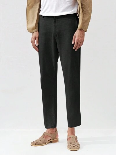 リネン風 オールドマネー調 ビジネスカジュアル 竹編みニット コーン型 開襟 スラックス メンズ 夏用-57%