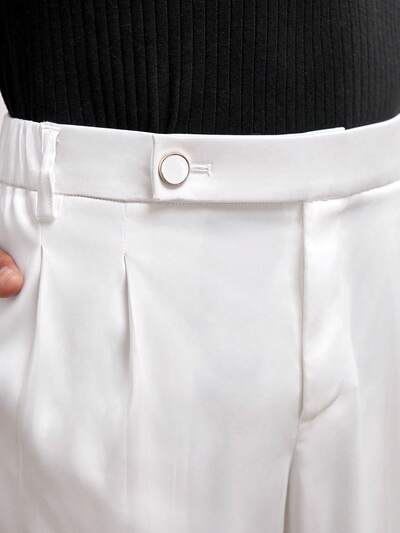 メンズ ホワイト メタルボタン エラスティックウエスト ウーブン スリムフィット ロング ミッドライズ テーパード カジュアル アンクルパンツ、デイリーウェア、結婚式、春夏シーズンに適しています-60%