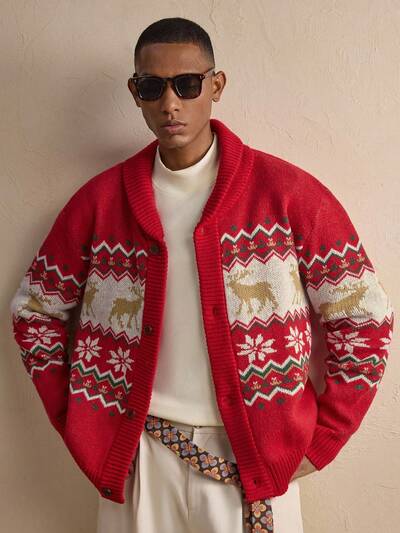 Men's Fashionable Casual Christmas Crew Neck Long Sleeve Sweater, Winter, New Year Glamour