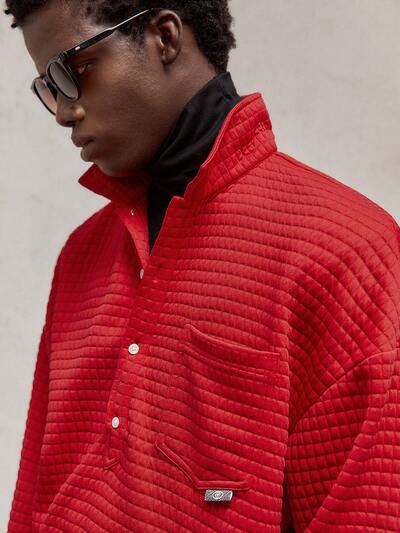 Men's Woven Plaid Slim Fit Stand Collar Long Sleeve Casual Shirt, Suitable For Autumn